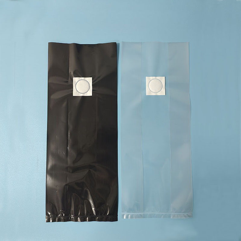 PP-svampodlingspåsar gjorda av stark polypropenfilm, den genomskinliga påsen gör det lätt att observera förändringar inuti påsen. Påsens botten är värmeförseglad ordentligt, den tål blandning av substratet medan stammen inokuleras